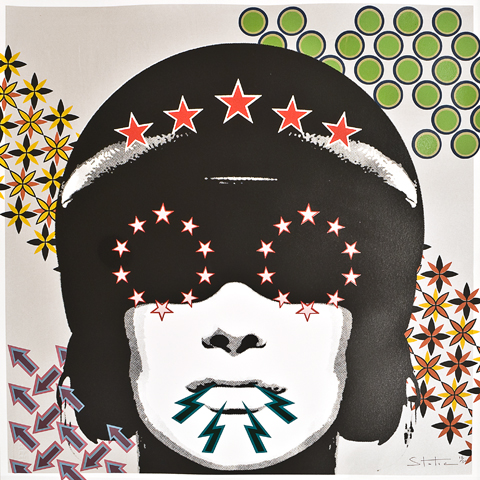 19 layer screen print with iridescent silver background and hand sprayed spot varnish 300 gsm Fabriano paper