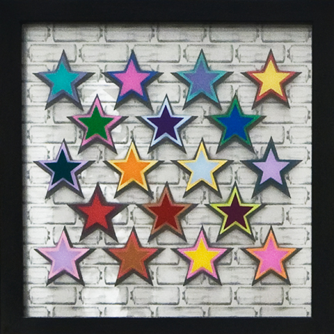 3 layered glass, stencil, spray paint, screen print & aluminium all in a bespoke black frame