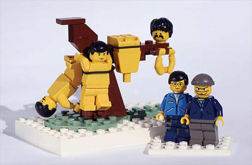Lego, acrylic block and plastic display cube