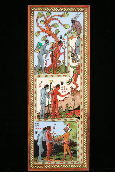 Acrylic, gold leaf, silk and satin on reverse-painted plexiglass