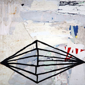 Found billboard paper on wood panel
