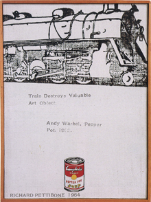 Train Destroys Valuable Art Object; Andy Warhol, "Campbellīs Soup Can (Pepper Pot)", 1962